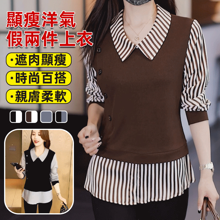 新款減齡顯瘦假兩件襯衫,上身遮肚顯瘦修飾身型,百搭不挑人,內搭外穿都好看!